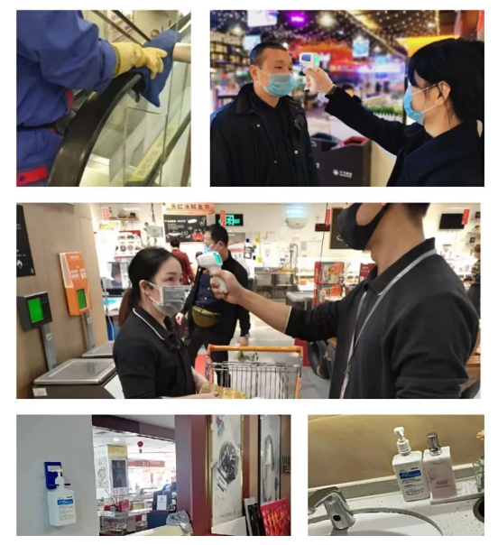 由于網(wǎng)上“配送到家”服務(wù)訂單量的劇增,在保障網(wǎng)上訂單及員工的安全性方面,蘇寧家樂(lè)福也做了十足防范措施。首先,蘇寧家樂(lè)福要求所有工作人員一律佩戴口罩,并通過(guò)體溫檢測(cè)才能上崗。其次,門店每天至少會(huì)在3個(gè)時(shí)間段使用84消毒液對(duì)賣場(chǎng)所有公共區(qū)域以及辦公區(qū)、員工餐廳等區(qū)域進(jìn)行清潔衛(wèi)生消毒,并對(duì)手提籃、購(gòu)物車、電梯扶手、垂直梯按鈕每隔2小時(shí)進(jìn)行清潔消毒;再次,賣場(chǎng)的熟食產(chǎn)品加蓋加罩售賣,安排專人看管,禁止顧客直接用手觸摸,停止提供“試吃”及“餐飲堂食”服務(wù)。所有快遞、外賣小哥必須佩戴口燥,并通過(guò)體溫檢測(cè),在門店入口用消毒凝膠清潔后方可提貨。