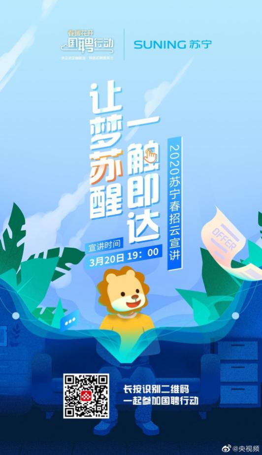 作為與民生、就業(yè)密切相關(guān)的大型零售企業(yè),蘇寧早在2月8日便啟動(dòng)了無接觸春招,3月20日,蘇寧更是通過央視頻國(guó)聘行動(dòng)開啟線上宣講。目前,線上面試與offer發(fā)放正在持續(xù)進(jìn)行中。