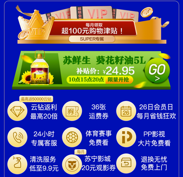 通過登陸蘇寧易購APP,搜索關(guān)鍵詞“白衣天使”,進(jìn)入自動(dòng)申領(lǐng)頁面。 SUPER會(huì)員是蘇寧為用戶打造的專屬會(huì)員體系,能夠滿足“白衣天使”們視頻娛樂、生活購物、服務(wù)等全場景的需求。