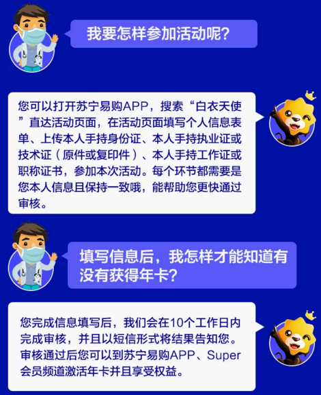 為表達(dá)對(duì)醫(yī)護(hù)工作者的敬意,蘇寧對(duì)全國醫(yī)護(hù)人員開放SUPER會(huì)員免費(fèi)申領(lǐng)活動(dòng)。