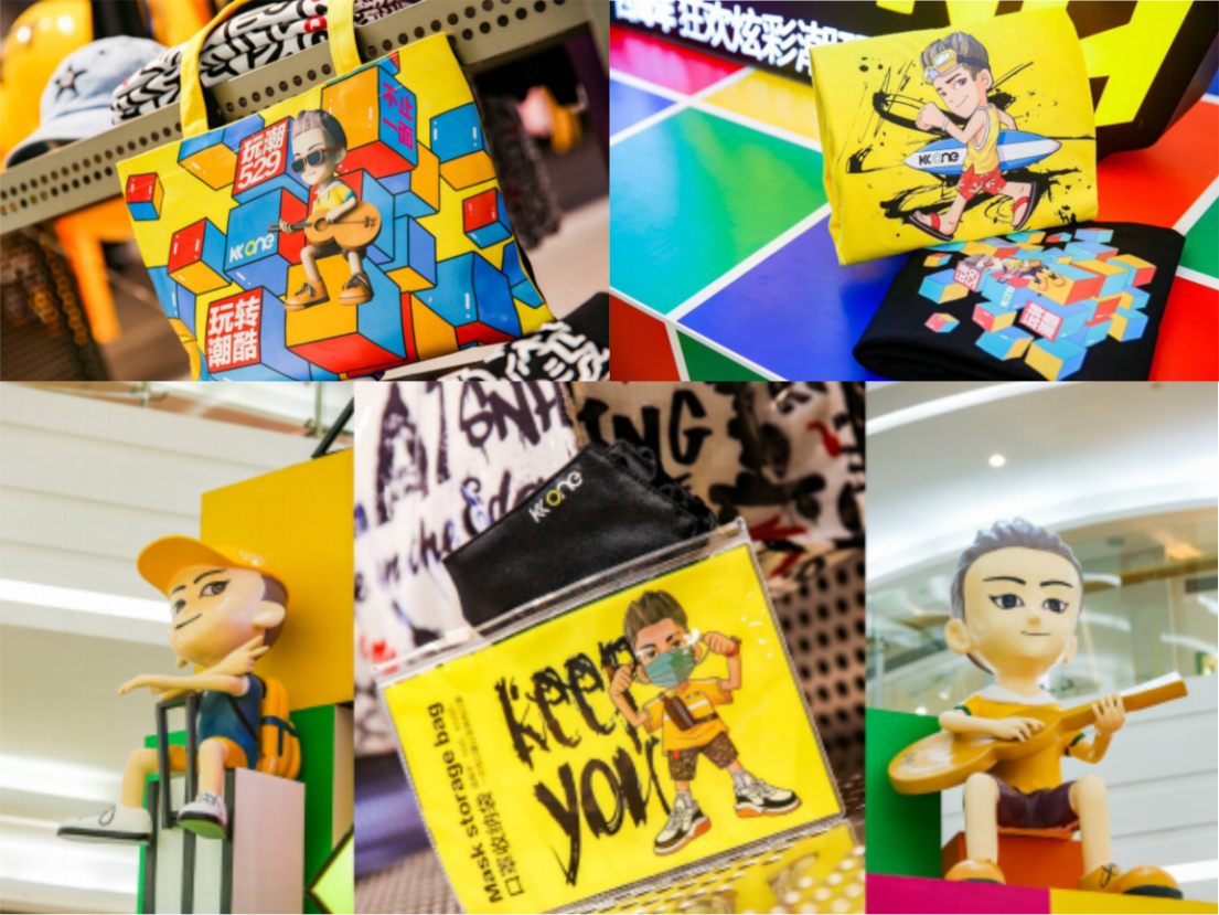 KK ONE原創(chuàng)IP ONE仔也進(jìn)行了全新亮相,從去年C位出道的練習(xí)生進(jìn)階為今天活力全開的潮流玩咖,ONE仔和所有追求個性和卓越的朋友一起成長,一起見證了2019年的街潮活動:拉闊籃球賽、不插電音樂賽、摩登實驗室、鐘漢良見面會等活動的精彩,一起體驗創(chuàng)新放肆玩法和玩潮“魔”力。ONE仔和熱愛生活的潮咖們一樣,喜歡運動,愛音樂,愛旅行。目前,ONE仔衍生的定制周邊皆陳列于本次炫彩“魔”方展中,并作為定制禮包贈送給粉絲和顧客。據(jù)悉,未來KK ONE會挖掘更多的IP玩法,鮮活ONE仔形象,為潮咖們提供更多的玩潮互動場。