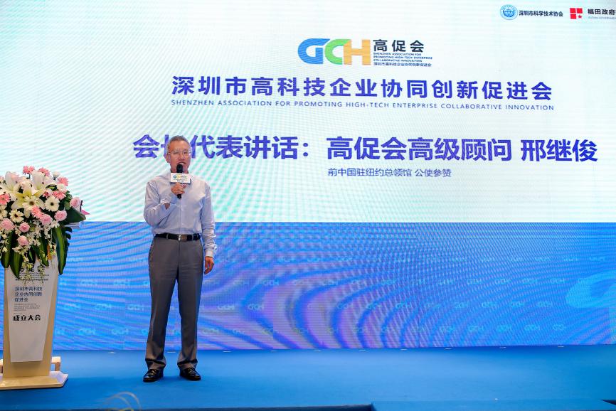 高促會高級顧問邢繼俊代表靳會長對支持高促會成立的各界人士表示衷心的感謝,并提出深圳市高科技企業(yè)協(xié)同創(chuàng)新促進會作為連接政府、科研院所和企業(yè)間的紐帶和橋梁,將部署以科技創(chuàng)新為核心的全面創(chuàng)新工作,充分釋放創(chuàng)新創(chuàng)業(yè)創(chuàng)造動能,把高新技術(shù)產(chǎn)業(yè)的旗幟舉得更高,集聚人才、集聚智慧,為深圳建設(shè)成為綜合性開放型科技創(chuàng)新中心,當好排頭兵、先行者,走科技創(chuàng)新之路,共筑美好明天。