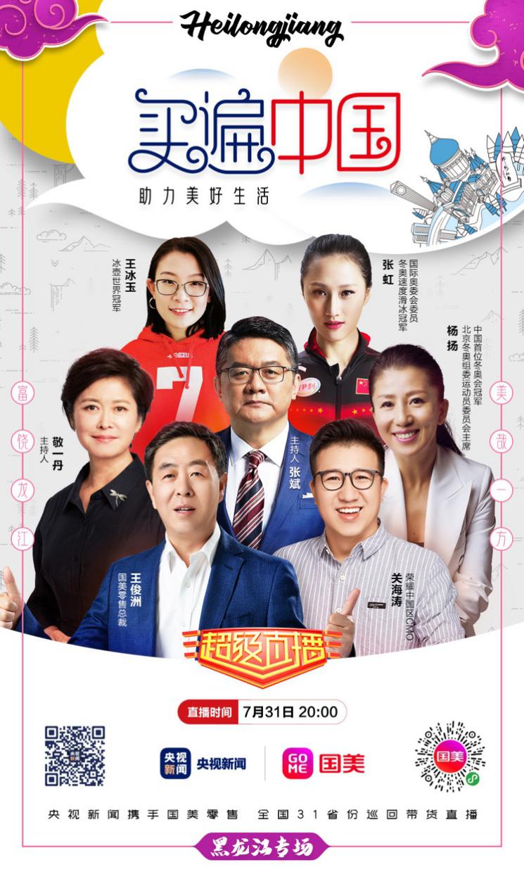7月31日,“買遍中國·助力美好生活——央視新聞&國美零售全國31省份巡回帶貨直播”第二站聚焦黑龍江,回眸東北這片熱土。本次直播延續(xù)了國美一貫的開放與親民風(fēng)格。央視體育主播張斌將與三位世界冠軍——中國首位冬奧會冠軍楊揚(yáng)、冬奧速滑冠軍張虹、冰壺世界冠軍王冰玉及央視主持人敬一丹同臺帶貨,除了推薦國美熱銷的數(shù)十款家電及消費(fèi)電子產(chǎn)品,更帶來了眾多黑龍江特色產(chǎn)品。