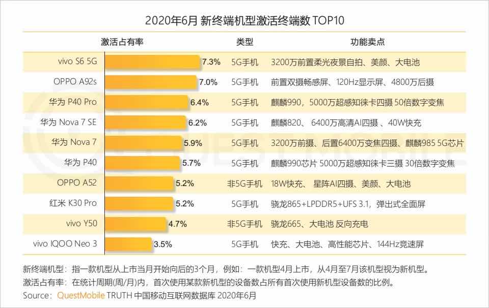 近期發(fā)布的《QuestMobile中國(guó)移動(dòng)互聯(lián)網(wǎng)2020半年大報(bào)告》顯示,“2020年6月新終端機(jī)型激活終端數(shù)Top10”的榜單中vivo S系列首款5G手機(jī)——vivo S6憑借3200萬(像素)前置柔光夜景自拍、美顏(功能)及大電池榮登榜首。值得一提的是,S6的迭代機(jī)型vivo S7目前也已經(jīng)曝光,將于8月3日正式發(fā)布。