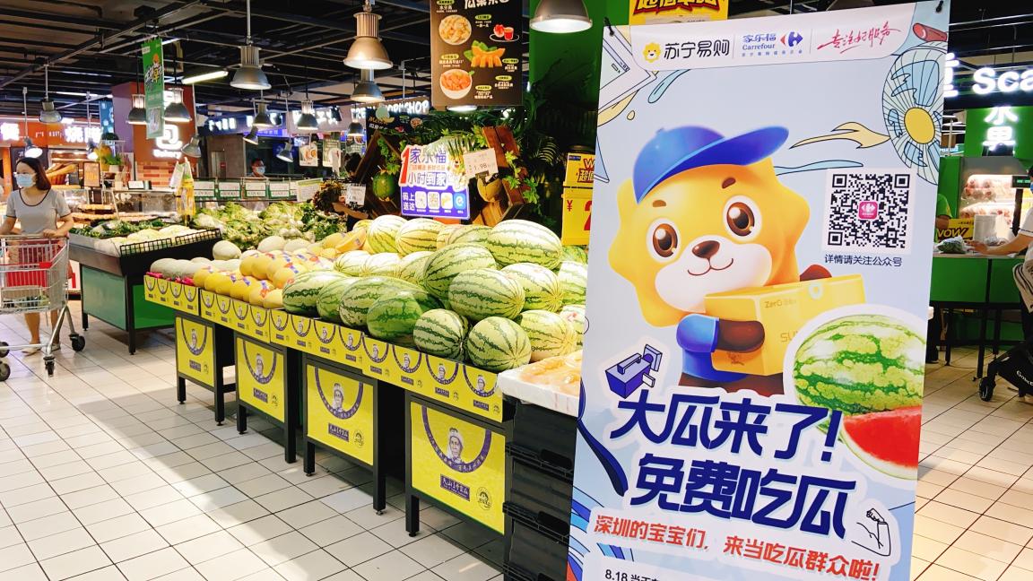 在線新經(jīng)濟賦能,大賣場“變臉”趨向年輕化,在這個818為各個年齡群的消費者打造更立體、更貼心的服務(wù)。為防止訂單暴漲可能給顧客造成延時配送的不愉快體驗,家樂福特別推出“消氣大瓜”活動,深圳地區(qū)免費送瓜上門。