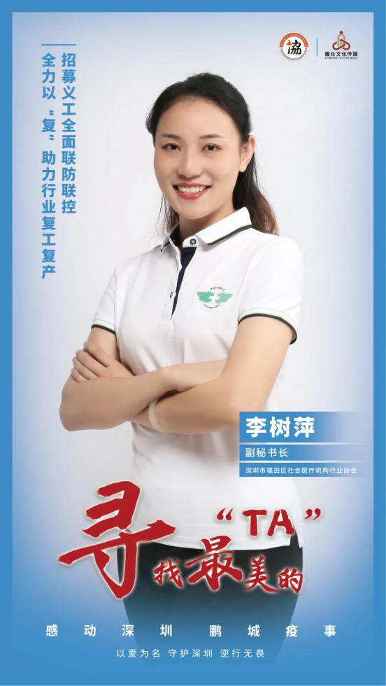 深圳市福田區(qū)社會醫(yī)療機(jī)構(gòu)行業(yè)協(xié)會副秘書長李樹萍,在區(qū)衛(wèi)生局的幫助下,早在1月16日即率先組織了福田轄區(qū)約250家社會辦醫(yī)機(jī)構(gòu)的防疫應(yīng)急培訓(xùn),為后續(xù)的科學(xué)防控打下了扎實(shí)基礎(chǔ)。疫情關(guān)鍵時期,社區(qū)防控一線醫(yī)務(wù)人員力量嚴(yán)重不足,李樹萍帶領(lǐng)團(tuán)隊(duì)聯(lián)合黨委和行業(yè)協(xié)會發(fā)起志愿者招募。歷時3個工作日共招募到196名志愿者,培訓(xùn)后符合要求上崗聯(lián)防聯(lián)控的123名志愿者,總服務(wù)時長達(dá)4555小時。