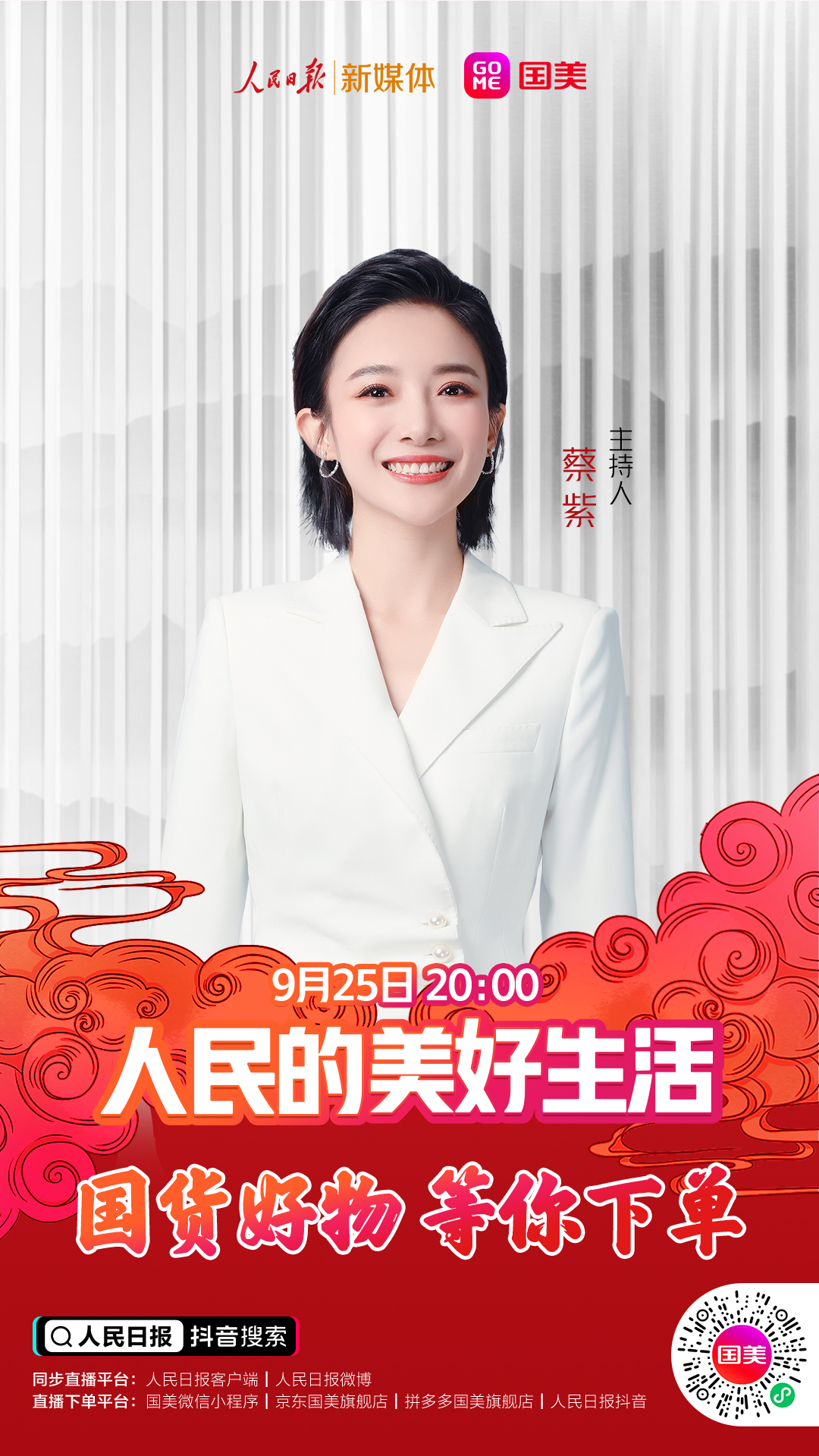 9月25日(周五)晚20點(diǎn),鎖定人民日?qǐng)?bào)抖音號(hào)、國(guó)美商城抖音號(hào)、國(guó)美微信小程序、國(guó)美京東旗艦店、國(guó)美拼多多旗艦店,關(guān)注直播,國(guó)貨好物,等你下單!人民的美好生活,不能少了你!(常軍平)