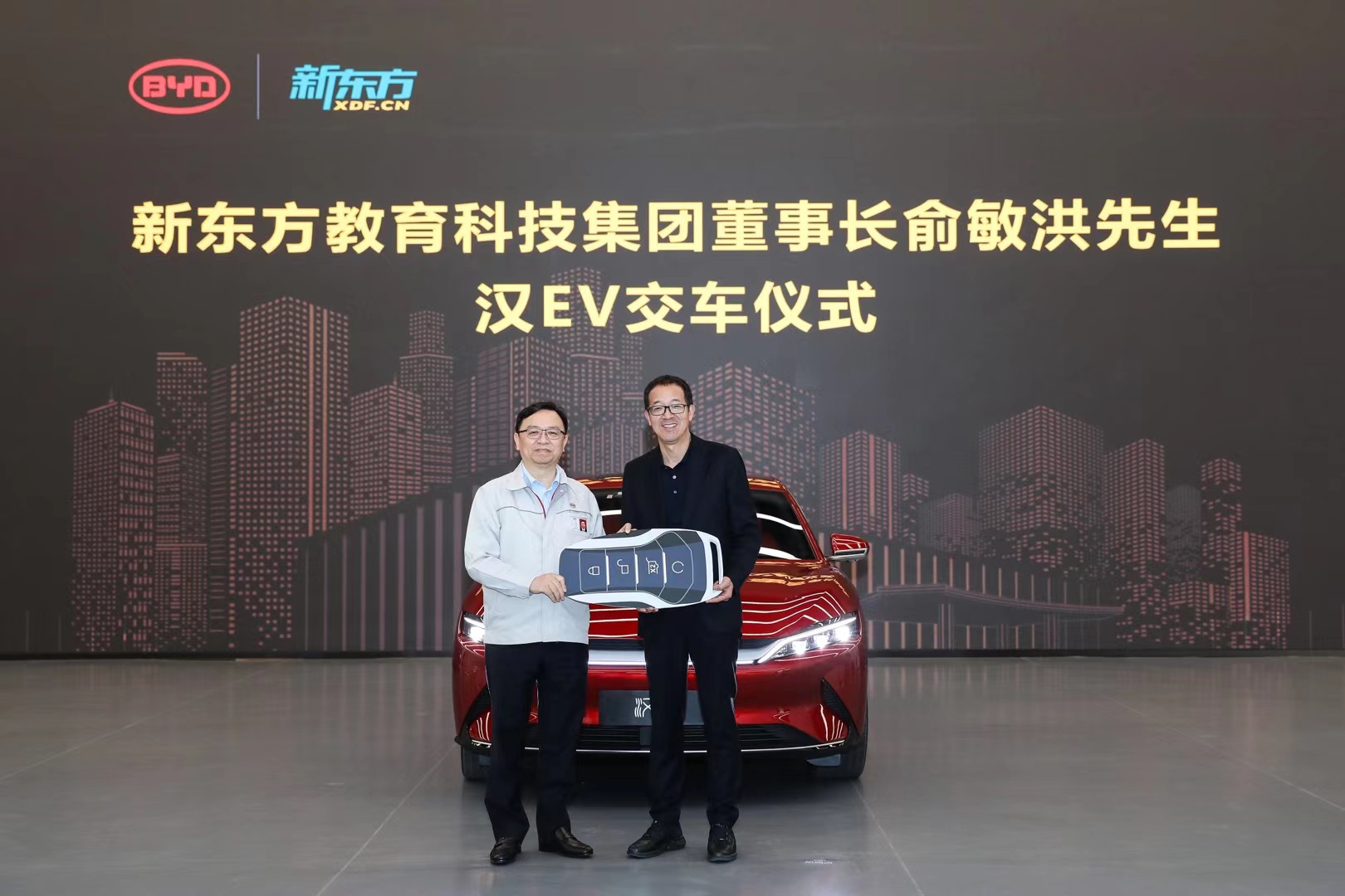 王傳福向俞敏洪親手交車 比亞迪漢EV精英車主陣營再壯大