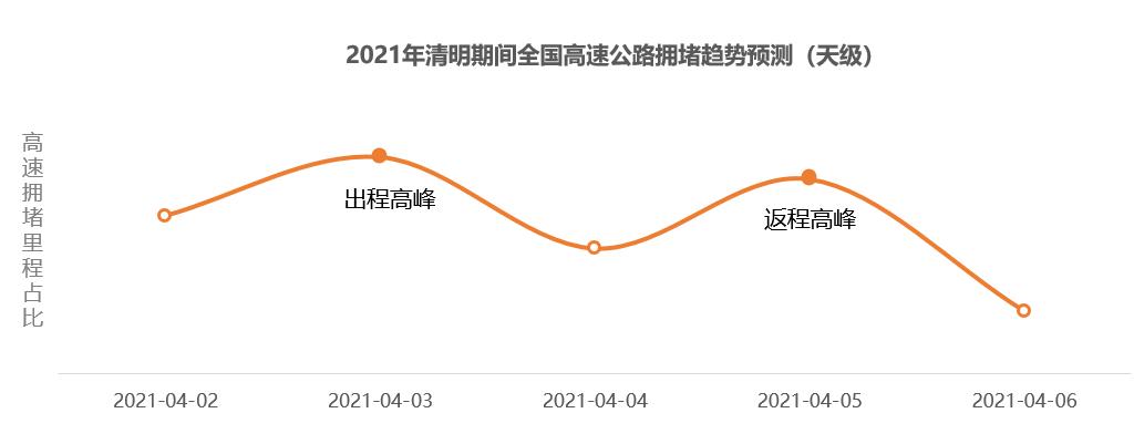 具體時段方面,預(yù)計2021年4月2日(清明小長假前一天)15時開始,全國高速交通壓力逐漸增大,20時至23時擁堵程度較高;4月3日(清明小長假第一天)8時至12時高速迎來出程擁堵高峰,預(yù)計10時至11時達(dá)峰值,4月5日(清明小長假最后一天)14時至19時為高速返程擁堵高峰。
