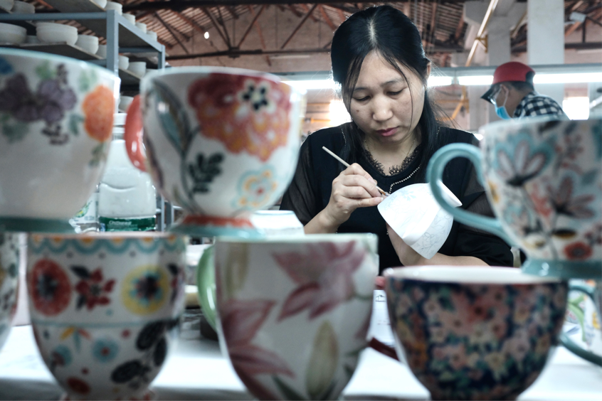 “電商平臺(tái)能夠滿足和培養(yǎng)消費(fèi)者需求,讓陶瓷餐具逐漸成為高頻消費(fèi)品。”蔡曉容指出。2018—2020年,這一系列的佳佰彩繪杯,在京東平臺(tái)的銷量連續(xù)三年復(fù)合增長(zhǎng)率超過100%。去年,聯(lián)源在國(guó)內(nèi)市場(chǎng)的銷售額較2019年增長(zhǎng)了50 %,達(dá)到歷年最佳,內(nèi)銷比重也由此前的25%提升到了50%。