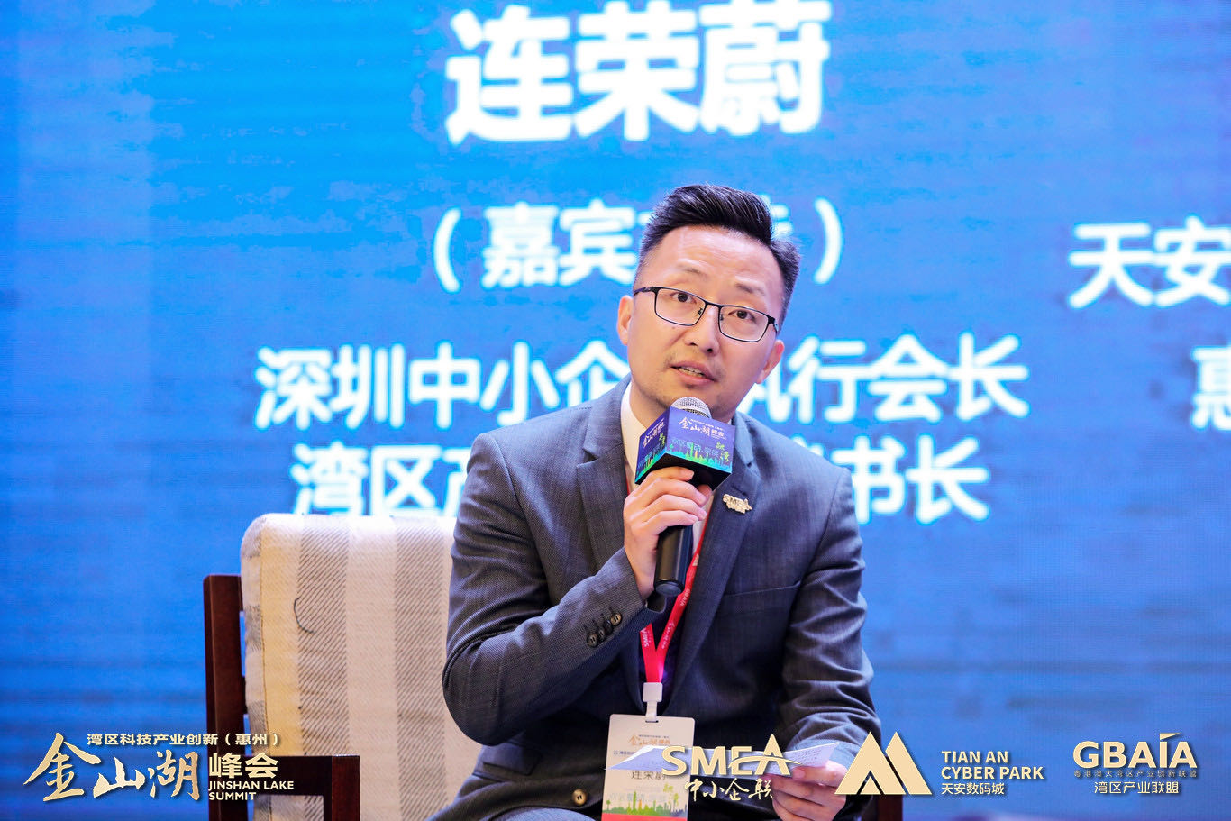 深圳中小企聯(lián)執(zhí)行會(huì)長(zhǎng)、灣區(qū)產(chǎn)業(yè)聯(lián)盟秘書(shū)長(zhǎng)連榮蔚主持論壇環(huán)節(jié)