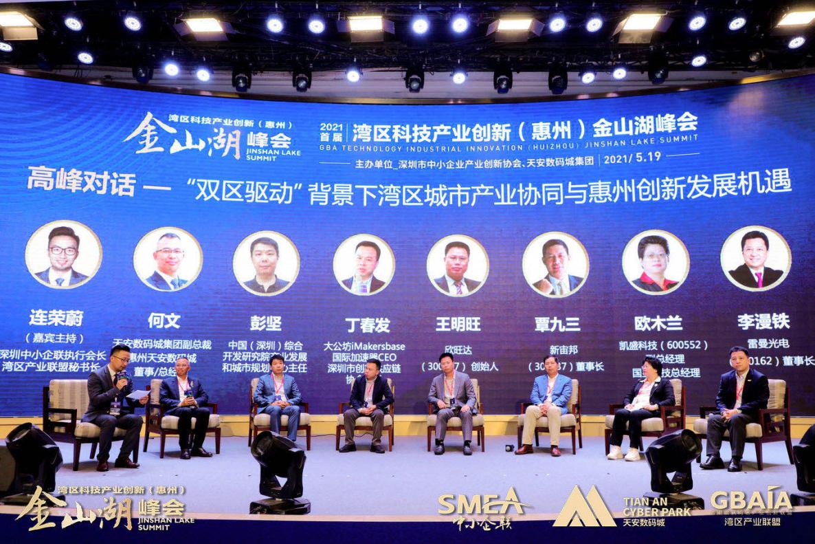 “‘雙區(qū)’建設(shè)是國(guó)家領(lǐng)導(dǎo)人和黨中央部署的重大國(guó)家戰(zhàn)略,作為粵港澳大灣區(qū)重要節(jié)點(diǎn)和深圳都市圈重要成員,全力支持、積極融入既是惠州鮮明的政治態(tài)度,也是惠州發(fā)展的必然抉擇。相信在惠州市及各級(jí)政府部門支持下,深圳市中小企業(yè)產(chǎn)業(yè)創(chuàng)新協(xié)會(huì)、天安數(shù)碼城集團(tuán)強(qiáng)強(qiáng)攜手,與各方合作伙伴共同努力,通過(guò)每年一屆的“灣區(qū)產(chǎn)業(yè)創(chuàng)新(惠州)金山湖峰會(huì)”深入落實(shí)創(chuàng)新驅(qū)動(dòng)發(fā)展戰(zhàn)略,匯聚粵港澳大灣區(qū)產(chǎn)業(yè)創(chuàng)新資源,深化粵港澳創(chuàng)新合作,助力惠州與灣區(qū)城市間的產(chǎn)業(yè)創(chuàng)新與協(xié)同發(fā)展。