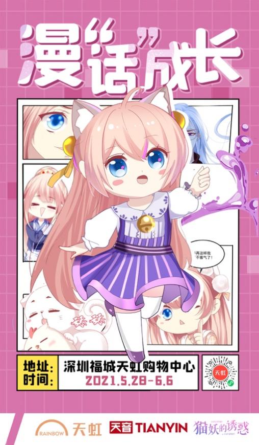 福城天虹購物中心《貓妖的誘惑》漫展將持續(xù)至6月6日,粉絲來到線下門店打卡將獲得主辦方天虹和天音互動準備的驚喜小禮品。