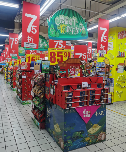此外,家樂福工作人員還表示:往年多是小打小鬧的端午節(jié)促銷檔,今年折扣力度不小。并且,粽子禮盒也加入讓利陣營,包裝精美的禮品盒粽,價格從幾十到幾百不等,平民化的價格受到許多消費者的青睞?!俺约撼酝猓簧偃诉€會購買一些送給親朋好友,有人甚至直接下單預訂上幾十個。”
