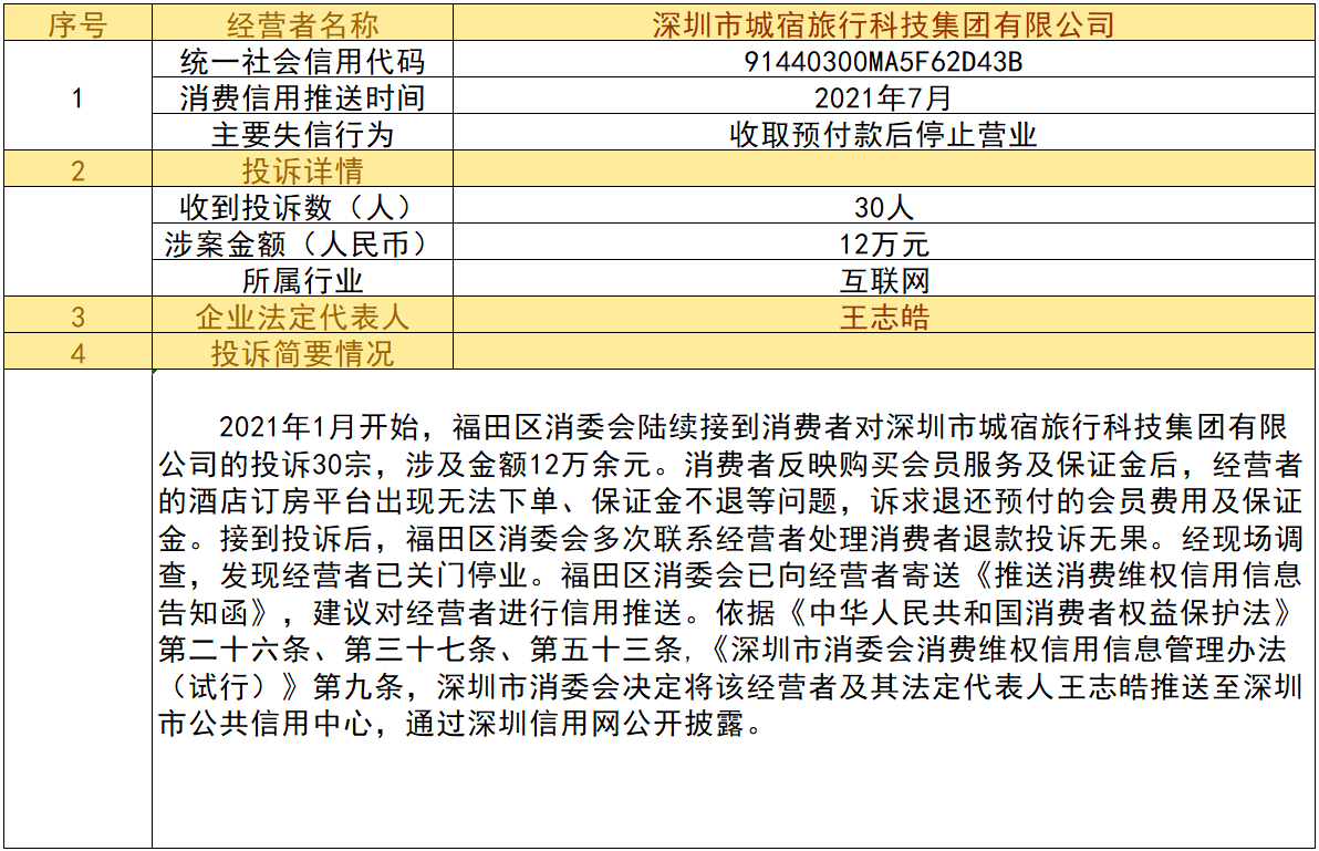 近日,深圳市消委會(huì)將九家“跑路”、未按約定退還消費(fèi)者預(yù)付款項(xiàng)的經(jīng)營(yíng)者及其主要負(fù)責(zé)人推送至深圳市公共信用中心,失信經(jīng)營(yíng)者信息信息將通過(guò)深圳信用網(wǎng)公開(kāi)披露。