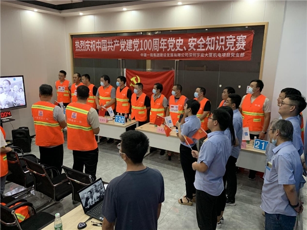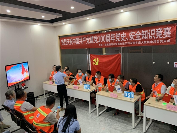 讀特客戶端·深圳新聞網(wǎng)2021年7月30日訊 同心筑夢,百年芳華,為扎實推進黨史學習教育走深走實,創(chuàng)新黨史知識學習方法,濃厚學習氛圍,增強學習興趣,近日,中建一局集團建設發(fā)展有限公司深圳宇宏大廈機電項目黨支部舉辦以慶祝中國共產(chǎn)黨建黨100周年“學黨史、守初心、保安全、促發(fā)展”為主題的黨史、安全知識競賽。此次活動參賽代表隊是由項目廣大工友組成“忠黨隊”、“愛國隊”、“為民隊”、“筑夢隊”,共計50余人參加了本次活動。