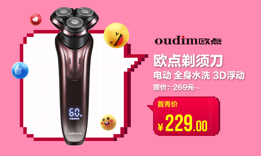在女生眼中,白白凈凈的男生更具吸引力,而胡子拉碴的男生難免會被貼上不講衛(wèi)生、不愛干凈、不注重自己形象的標(biāo)簽。鑒于此,“真快樂”APP為男同胞們帶來了一款實力硬核的歐點電動剃須刀,它采用了雙環(huán)圓弧刀網(wǎng),讓剃須更快、更凈、更爽。這樣的心水好物,首秀價只要229元,助你秒變小鮮肉。