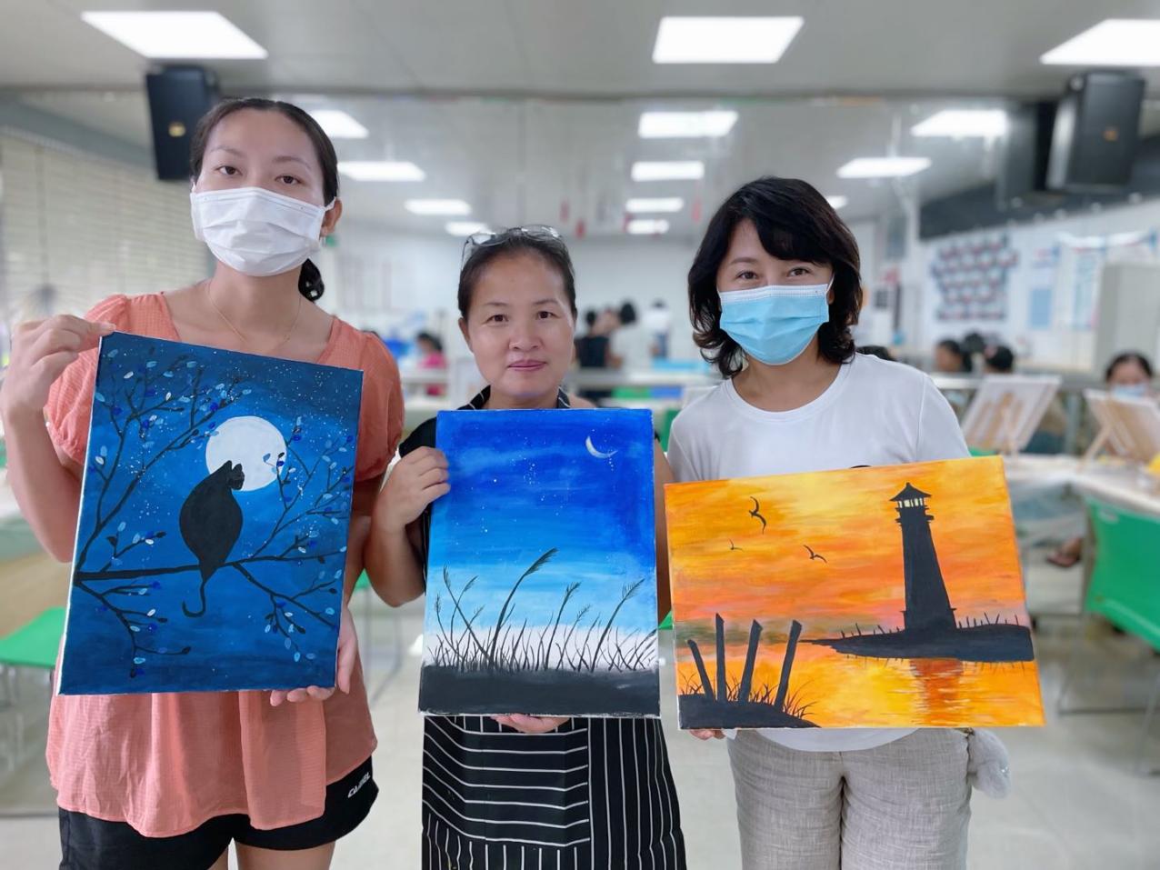 溫馨的環(huán)境,融洽的氣氛,專業(yè)的老師,友好的同伴,媽媽們度過(guò)了一個(gè)個(gè)美好的下午。盡管媽媽們都是零基礎(chǔ),但全情投入的專注,不僅釋放了壓力,更是打開(kāi)了一扇通往油畫(huà)藝術(shù)的小窗。愛(ài)自己,愛(ài)生活,才能更好地愛(ài)家人,本次油畫(huà)班持續(xù)開(kāi)展約兩個(gè)多月,媽媽們更好地享受屬于自己的油畫(huà)時(shí)間,學(xué)有所獲。