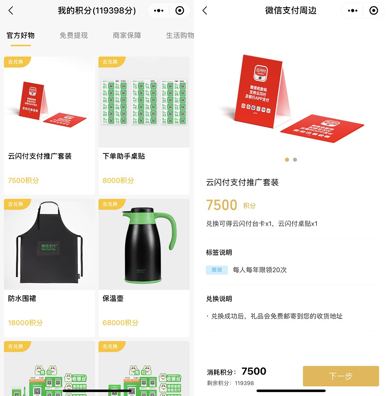 記者了解到,線下門店出現(xiàn)的宣傳物料是微信支付積極落實互聯(lián)互通的又一舉措,目前微信支付與銀聯(lián)云閃付 App已實現(xiàn)線下所有條碼的互認互掃,用戶可通過云閃付App直接掃描微信支付各類收款二維碼并完成付款。商家可在“收款小賬本”微信小程序,進入“我的積分”頁面,使用積分兌換“云閃付支付推廣套裝”,此外購買“微信官方收款碼”也可同時獲取云閃付相關(guān)物料。