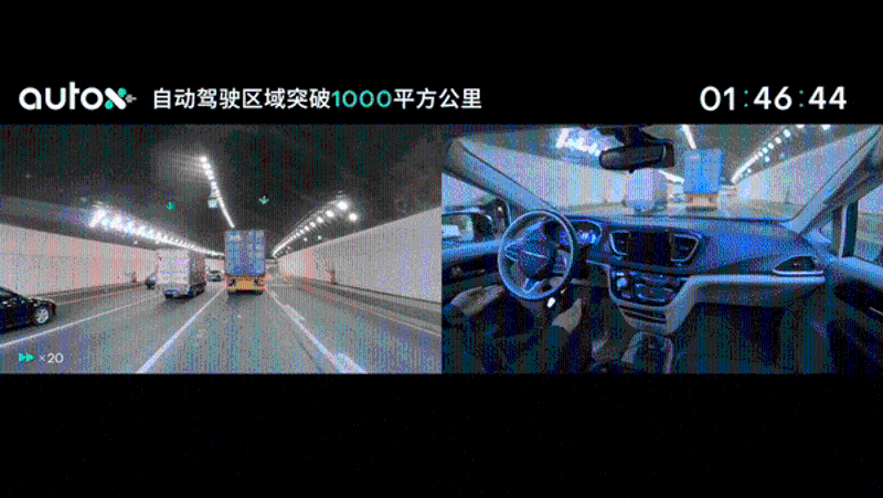 此外,無人車還穿越了長達(dá)2.3公里隧道。在1小時(shí)46秒進(jìn)入隧道后,AutoX無人車始終保持50-60公里高速時(shí)速,連續(xù)穿越三個(gè)隧道,最終平穩(wěn)駛出,定位算法輕松應(yīng)對數(shù)公里長的隧道。