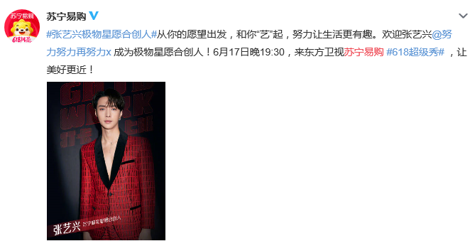 昨日,蘇寧易購官方微博宣布關曉彤成為蘇寧易購代言人,作為極物星愿合創(chuàng)人,正式入職蘇寧易購。