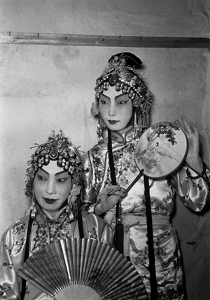 他10歲學(xué)藝,13歲正式登臺(tái)演出《玉堂春》、《四郎探母》等劇目,彼時(shí)的中國(guó)正值抗戰(zhàn)的危難時(shí)期,風(fēng)雨飄搖,他的父親為彰顯民族氣節(jié),正蓄須明志,暫別舞臺(tái)。我們?cè)诹鱾飨聛?lái)的文獻(xiàn)照片中,只能看見(jiàn)一個(gè)面容清秀的少年,安靜地立于他名聲浩蕩的父親的身后,身體微微前傾——除此之外,我們沒(méi)法更多地捕捉到這對(duì)父子之間情感上的細(xì)節(jié),那黑白的畫面,靜穆而有意地拒絕向后人傳遞出更多的信息。