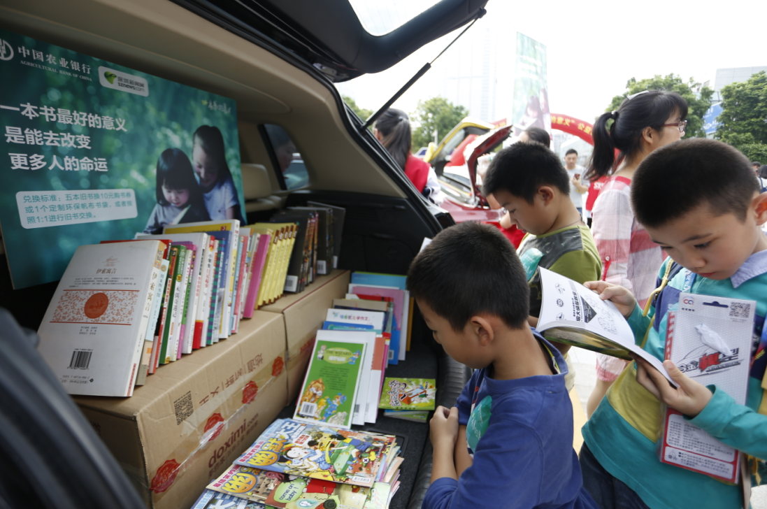 本次活動將車尾箱作為展臺,活動參與者按照1:1進行舊書交換,或到深圳農行現場設置的捐書點捐獻舊書,每捐出五本舊書,可獲得由農行送出的10元書劵?;顒游齺碜藻\田小學、深圳實驗學校中學部及深圳新聞網網友共40多個家庭參與,僅兩個小時便交出漂亮的“成績單”,現場交換圖書900多本,捐贈愛心書籍1000余本。