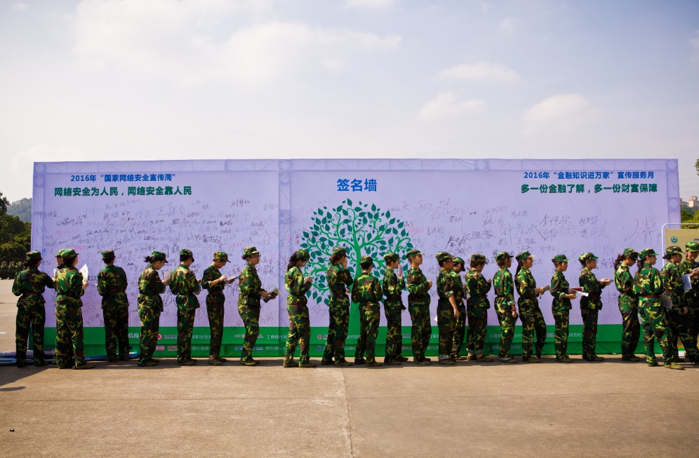 近4000名深圳職業(yè)技術學院的大一新生積極參與,在各個展位前領取宣傳手冊、折頁,并在簽名版上爭相簽名留念。但這場活動并不是在深圳職業(yè)技術學院校園,而是在深圳國防教育基地。