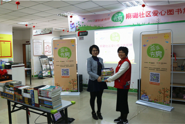 據(jù)介紹,為建設(shè)“學(xué)習(xí)型社區(qū)”,麻磡社區(qū)已經(jīng)建立了“四點半學(xué)校閱讀區(qū)”閱讀室,但由于社區(qū)原有圖書陳舊,急需一批新書豐富圖書資源來滿足社區(qū)孩子們的閱讀需求。了解到這一信息后,“爸爸書房”聯(lián)合中國工商銀行深圳分行、深圳市閱讀聯(lián)合會采購了一批全新的兒童讀物送到麻磡社區(qū),建立“爸爸書房愛心圖書角”,助力社區(qū)圖書室建設(shè)。