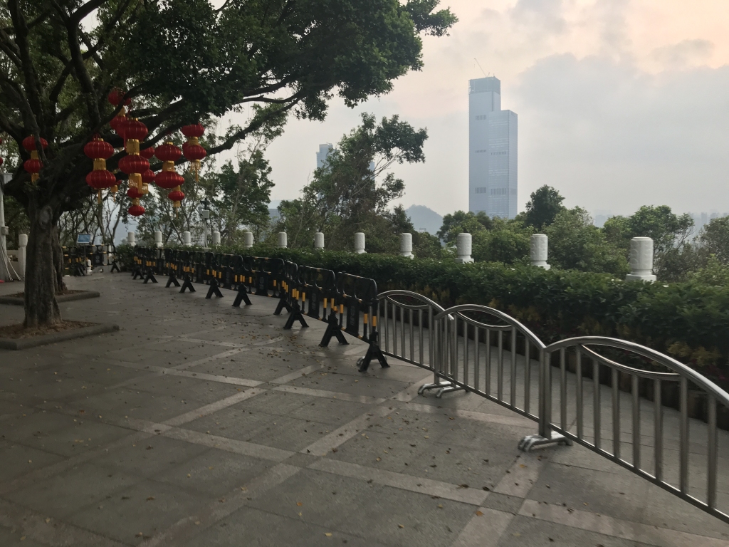10月9日,有市民發(fā)帖稱,蓮花山公園山頂廣場上以及廣場四周的漢白玉欄桿前,都被人為設置了一圈“鐵馬”。由于蓮花山山頂是深圳著名的旅游景點,該市民認為設置圍欄會使很多游客無法近距離合影。與此同時,市民還反映如要靠近廣場四周的漢白玉欄桿前拍照,就會被公園保安阻攔。保安稱要靠近欄桿拍照,則必須到管理處開證明,其質疑該項規(guī)定不合理。