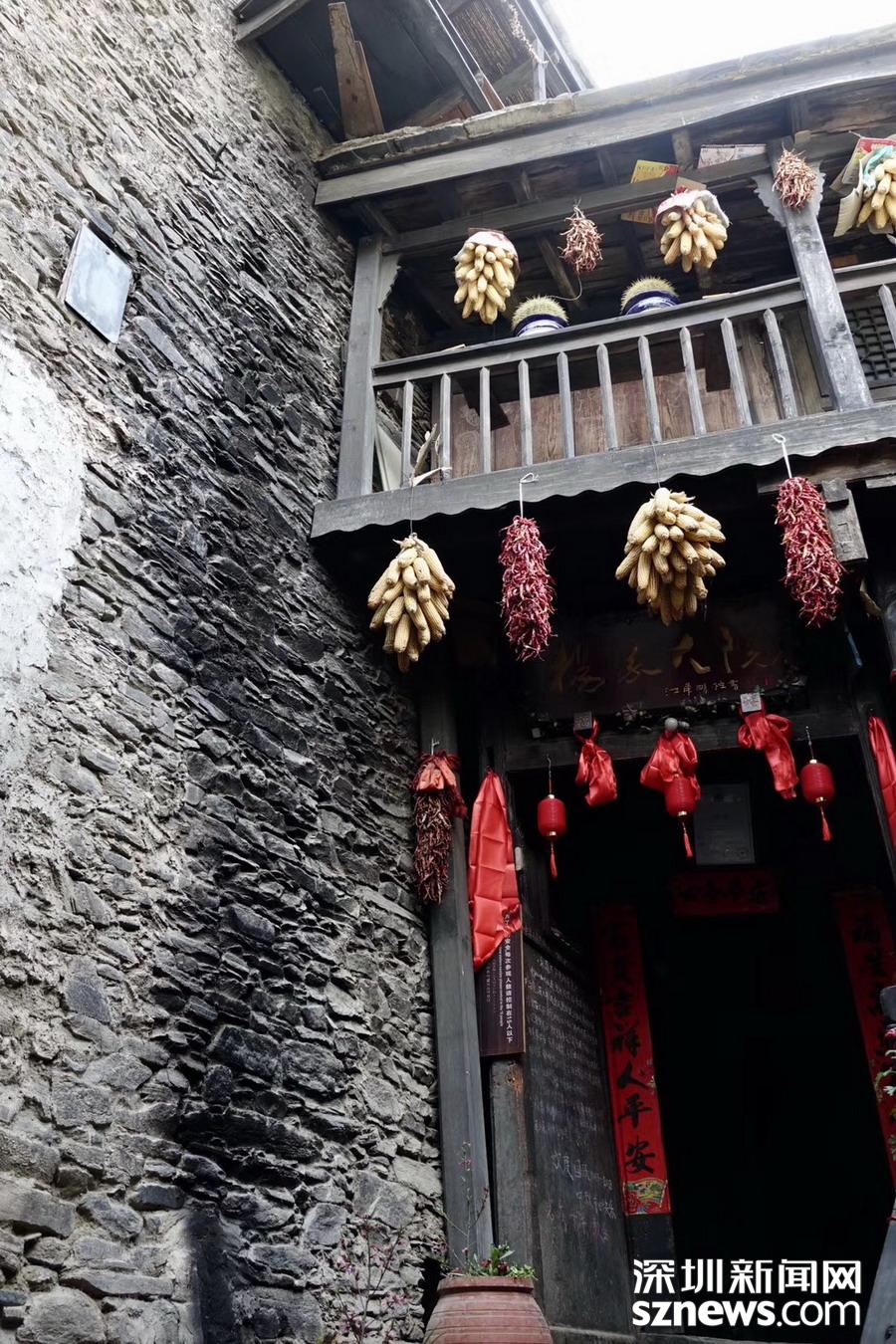 碉樓是整個(gè)寨子的標(biāo)志性建筑,目前僅存兩座,一座是陳仕明家的住宅,另一座雄踞在寨子對面的河岸上。碉樓分為9層,高30米左右,各層四方開有射擊窗口,頂樓的鐘孔是作為傳遞消息用的。李仁奇 攝