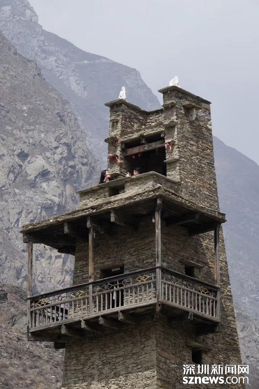 碉樓是整個寨子的標(biāo)志性建筑,目前僅存兩座,一座是陳仕明家的住宅,另一座雄踞在寨子對面的河岸上。碉樓分為9層,高30米左右,各層四方開有射擊窗口,頂樓的鐘孔是作為傳遞消息用的。李仁奇 攝