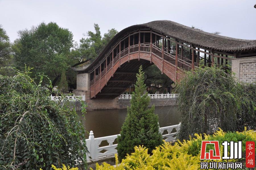 坐落在縣城南清源河(渭河南源)上的灞陵橋,為古典純木結(jié)構(gòu)臥式懸臂拱橋,俗稱臥橋,是渭河上游的第一座橋梁,始建于明朝洪武年間(1368—1398),經(jīng)過上世紀(jì)二、三十年代的多次重修和1984年按原樣的重建,它的樣式、結(jié)構(gòu)及文物價(jià)值歷來為文人政要稱道,現(xiàn)為全國重點(diǎn)文物保護(hù)單位,是渭源縣、定西市乃至甘肅省的代表性景點(diǎn)之一。李仁奇 攝