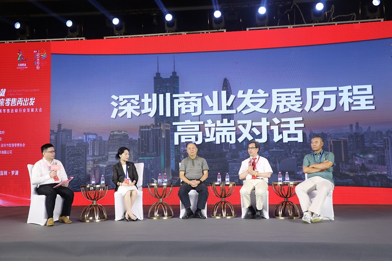 原天虹商場總經(jīng)理趙陸原(中)、周大生董事長周宗文(右二)、百果園總經(jīng)理徐艷林(左二)、百麗國際副總裁徐先達(dá)(右一)