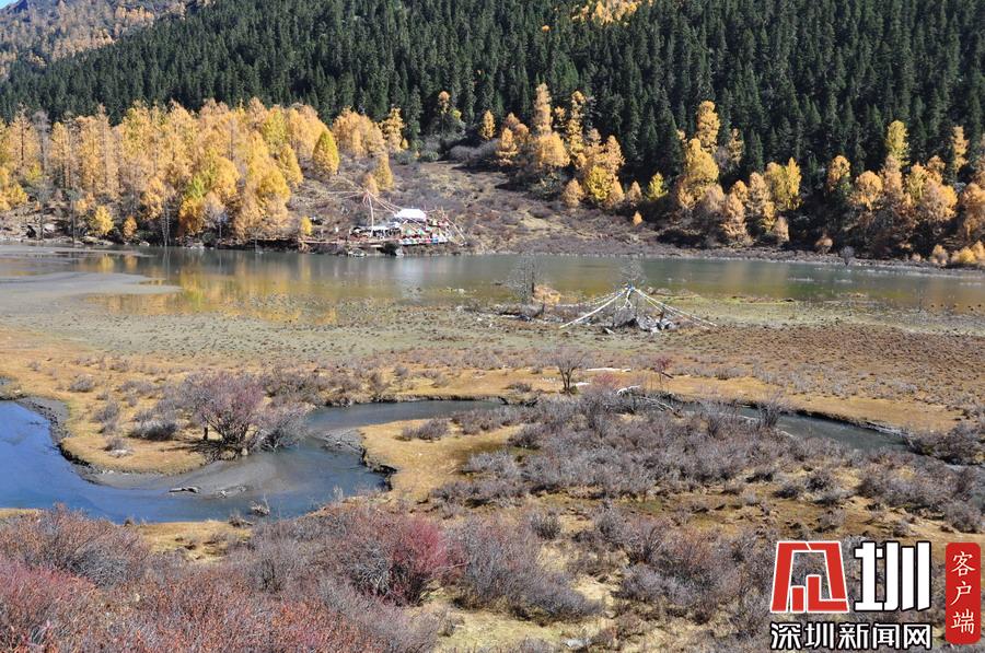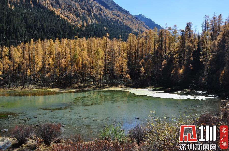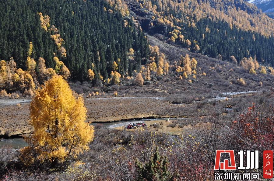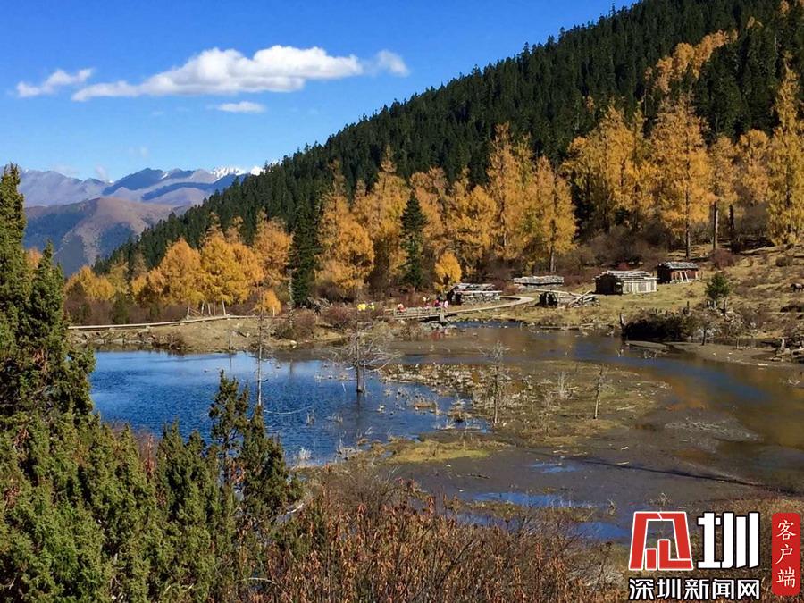 溝里有大片的落葉松、杜鵑和云杉林,雪山、海子、濕地、河流等景觀應有盡有,唯獨沒有公路,只能沿木棧道徒步游覽。李仁奇攝