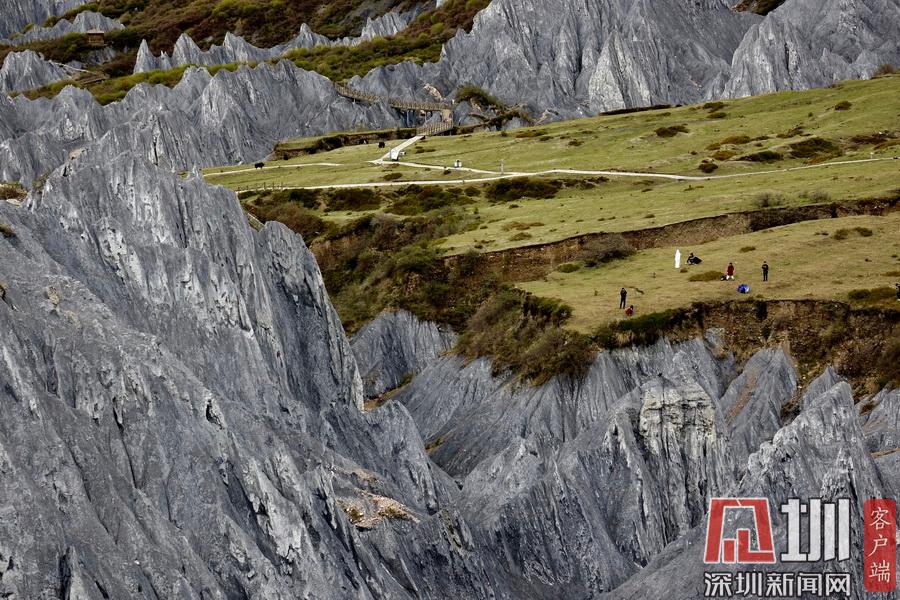 它是3年前開發(fā)建成的網(wǎng)紅景點,全世界獨有的糜棱巖石林,面積4.7平方公里,海拔約3500米,被命名為“中國墨石公園”。李仁奇 攝