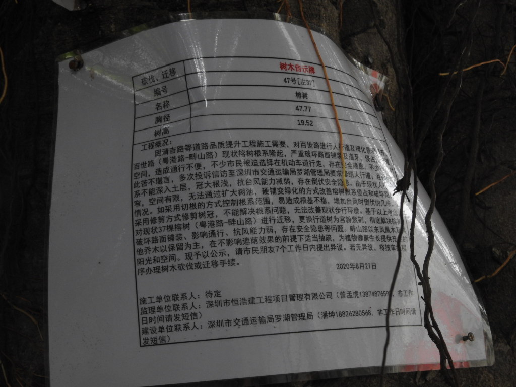 9月11日,市交通運(yùn)輸局羅湖管理局回應(yīng)表示,稱“經(jīng)核實(shí),百世路西段北側(cè)(畔山路以西)樹木為大葉榕,屬于榕樹的一種,榕樹有多種,如小葉榕、大葉榕、高山榕、垂葉榕等,百世路榕樹現(xiàn)狀根系已確實(shí)對人行道造成破壞。”對于其它樹被砍的情況,“僅對影響道路轉(zhuǎn)彎半徑(畔山路右轉(zhuǎn)百世路)的兩棵鳳凰樹遷移砍伐”。并在不影響遮陰的情況下“對北側(cè)過密其他喬木進(jìn)行抽梳”。
