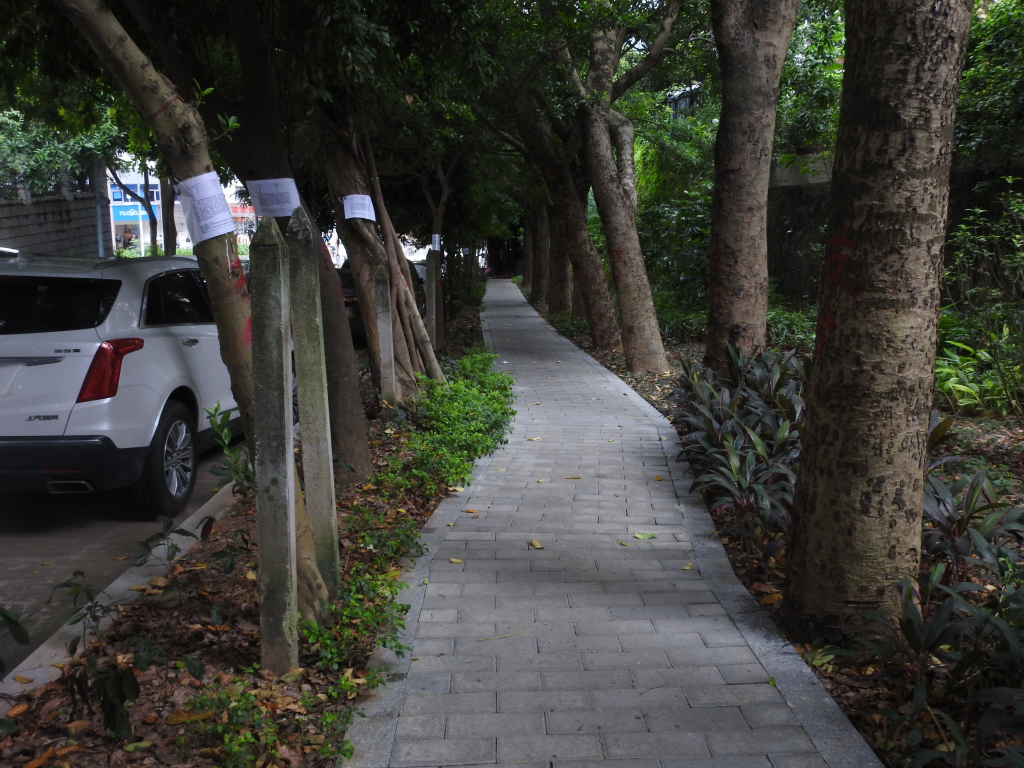 回應(yīng):被貼紙條的樹屬于榕樹的一種,已確實(shí)對人行道造成破壞