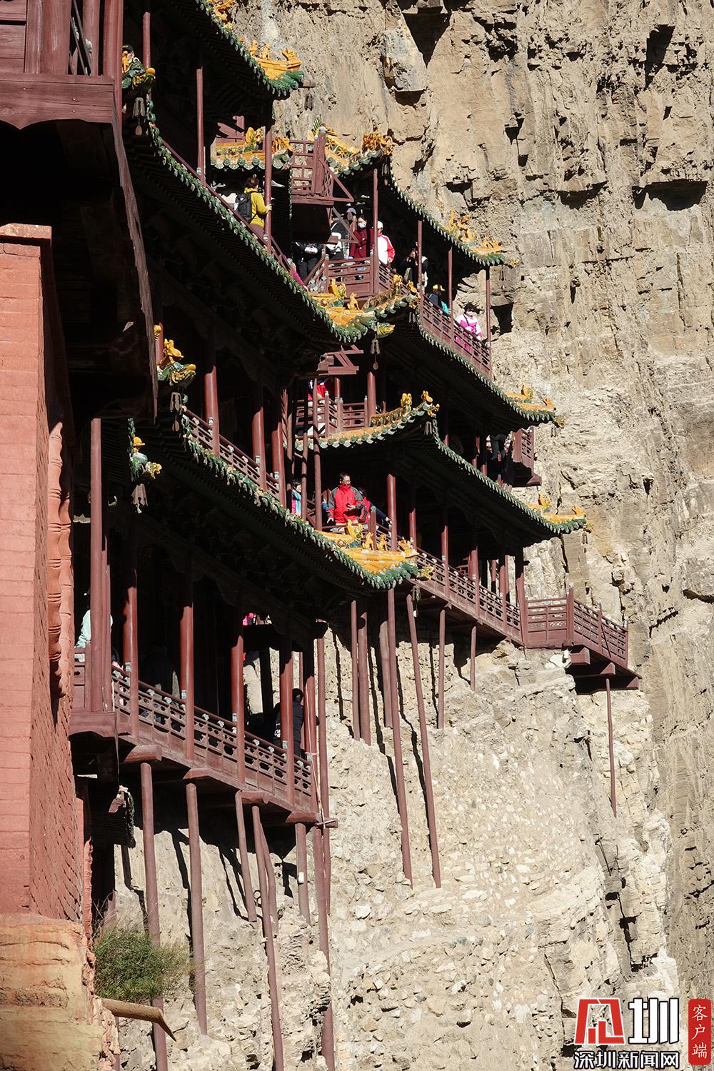 登上懸空寺,從寺廟上遠眺,崇山峻嶺盡收眼底。視線向下俯瞰,懸崖峭壁讓人心驚膽戰(zhàn),但在戰(zhàn)勝自己的恐懼之后會發(fā)現(xiàn),這確實是一個非常值得一游的景點。李穎攝