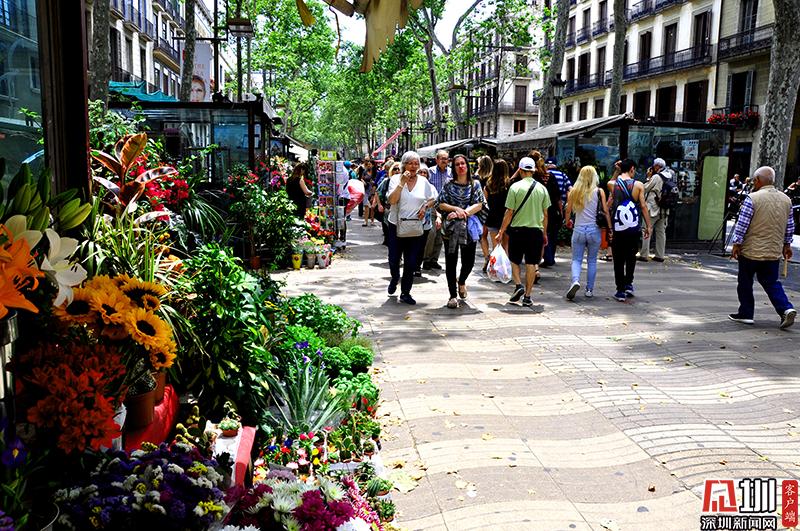 這條街連接著老城區(qū)加泰羅尼亞廣場和哥倫布紀念碑廣場兩個主要景點,每天游人如織。圖為蘭布瑯花街。李仁奇 攝