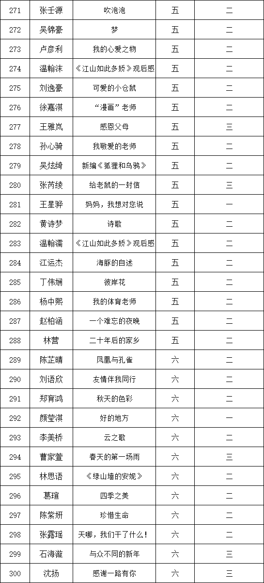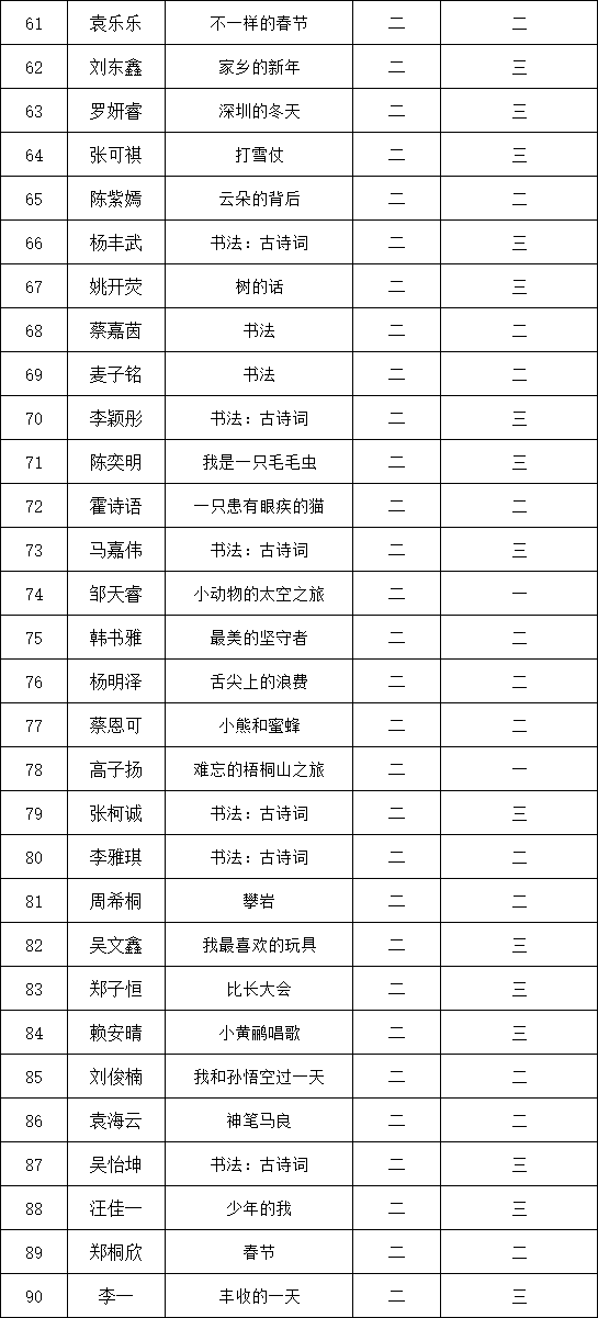 自2021年1月,活動征稿啟動以來,獲得了深圳市廣大中小學生、教師、文學愛好者的熱烈響應積極參與,吸引了深圳百余所學校的上萬人關注報名?,F(xiàn)公布深圳市濱河小學校園專場晉級復賽名單如下: