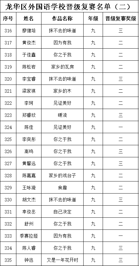 自2021年1月,活動(dòng)征稿啟動(dòng)以來,獲得了深圳市廣大中小學(xué)生、教師、文學(xué)愛好者的熱烈響應(yīng)積極參與,吸引了深圳百余所學(xué)校的上萬人關(guān)注報(bào)名?,F(xiàn)公布龍華區(qū)外國語學(xué)校專場晉級復(fù)賽名單如下: