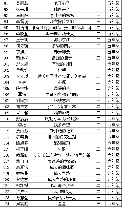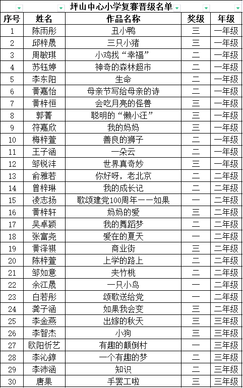 自2021年1月,活動(dòng)征稿啟動(dòng)以來(lái),獲得了深圳市廣大中小學(xué)生、教師、文學(xué)愛(ài)好者的熱烈響應(yīng)積極參與,吸引了深圳百余所學(xué)校的上萬(wàn)人關(guān)注報(bào)名?,F(xiàn)公布坪山區(qū)坪山中心小學(xué)晉級(jí)復(fù)賽名單如下: