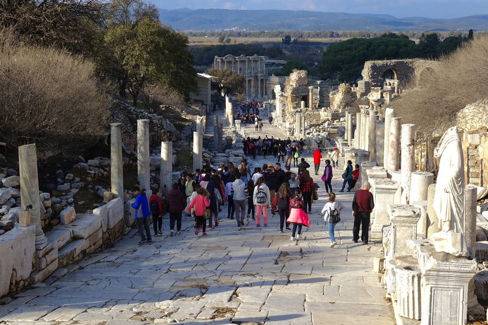 庫里特斯街。是以弗所主要的街道,其兩側(cè)仍存有許多遺跡,沿著街道緩坡可到達(dá)上層的市政廳。李仁奇 攝