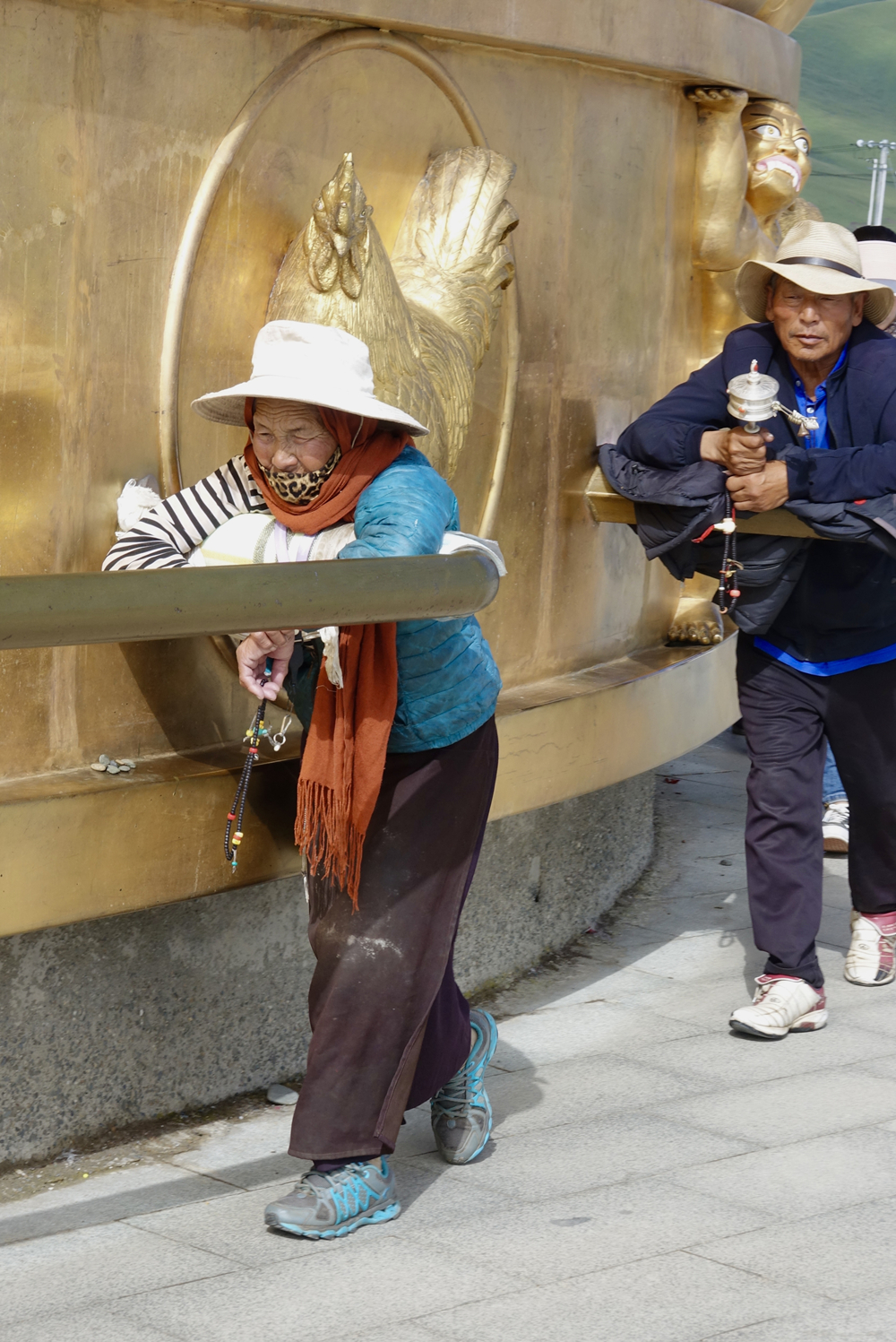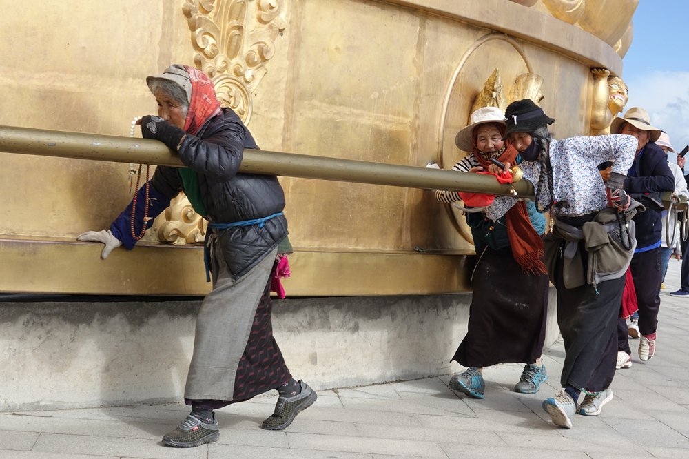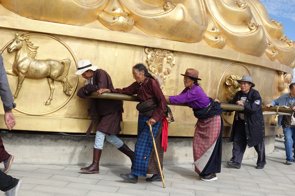 據(jù)傳,轉(zhuǎn)動(dòng)經(jīng)輪一周,即等同于念誦《大藏經(jīng)》一遍。藏傳佛教認(rèn)為,“持頌真言越多,越表明對佛的虔誠,可得脫輪回之苦”。李仁奇 攝