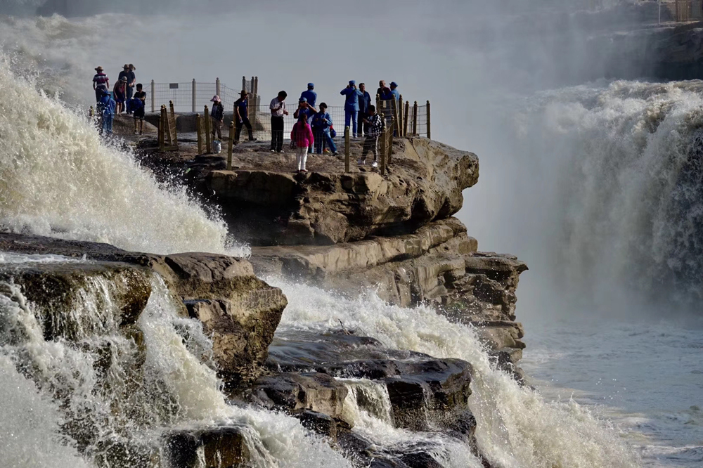 瀑布上游黃河水面寬300米,在不到500米長的距離內,被壓縮到20-30米的寬度。1000立方米/秒的河水,從20多米高的陡崖上傾注而下,形成”千里黃河一壺收”的氣概。這也是第四套人民幣50元紙幣背面的取景地。李仁奇 攝