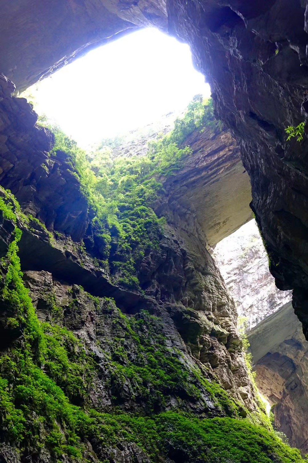 “暗河”指的是這條河流穿行溶洞的部分。里面漆黑一片,伸手不見五指,但中段有“蒼天有眼”(實為天生橋)奇觀,末端有形似“天下第一刀”的天空,令人稱奇。李仁奇 攝