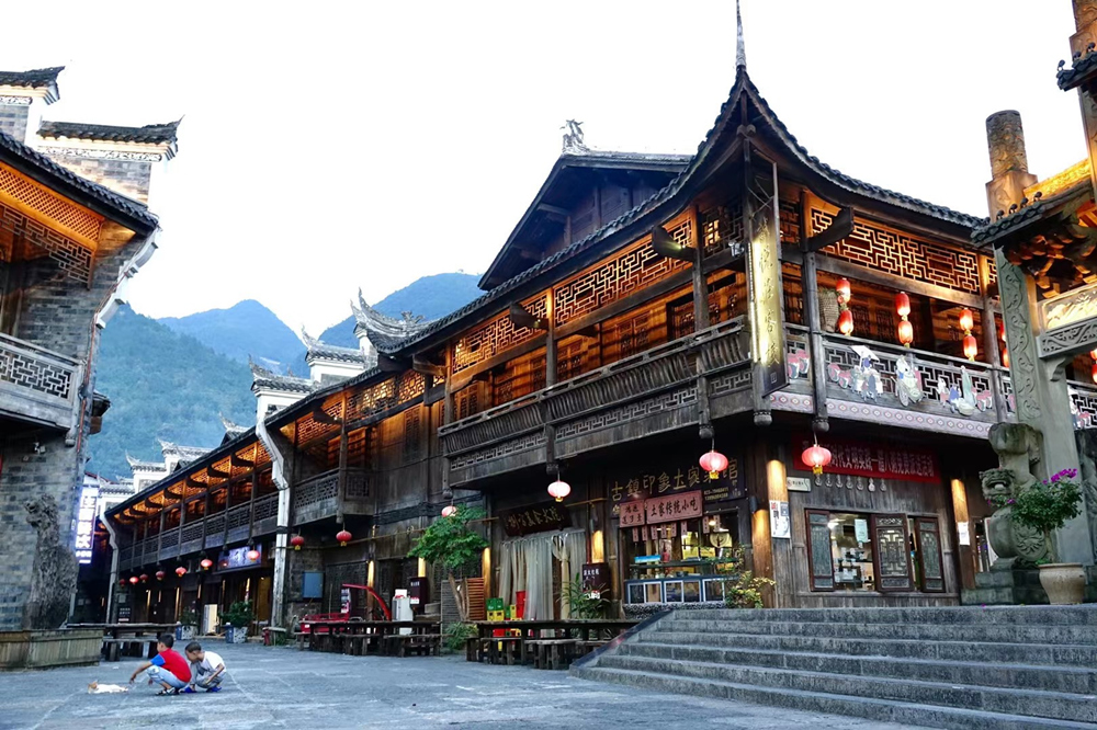 徽式磚砌騎馬墻,古鎮(zhèn)建筑是土家族吊腳樓與徽派建筑的完美結合。李仁奇 攝