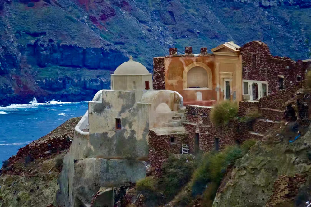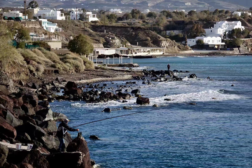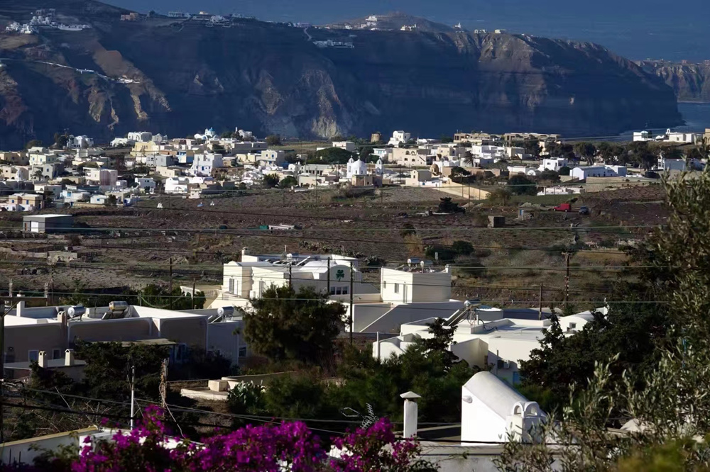 現(xiàn)在的圣托里尼島是希臘最著名的旅游勝地,以其充足的陽光,宜人的地中海氣候、獨(dú)特的地形地貌和藍(lán)白色的建筑吸引著全球的游客。李仁奇 攝