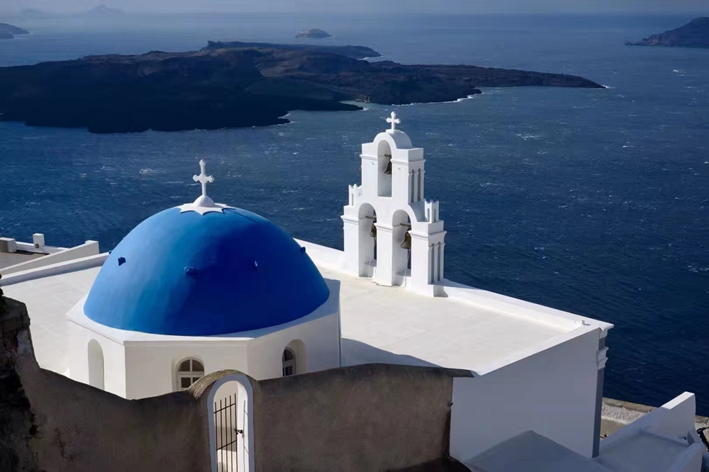 藍(lán)頂教堂曾經(jīng)登上美國《國家地理》雜志的封面,使圣島聲名遠(yuǎn)播。李仁奇 攝